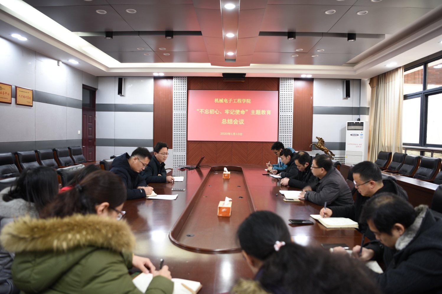 韩宝坤从主题教育主要举措、主要成果、存在的问题三个方面系统总结了学院从9月开展主题教育以来的各项工作。韩宝坤指出,通过开展“不忘初心、牢记使命”主题教育,全院师生凝聚了共识、汇聚了力量,明确了方向。当前,学院正处在发展建设的关键时期,存在很多机遇,也面临很多问题,学院党委将带领全院师生员工,不等不靠、主动作为,将“不忘初心、牢记使命”主题教育成果与学院实际工作紧密结合,推动主题教育不断往深里走、往心里走、往实里走,确保把主题教育激发出的干事热情和进取精神,转化为做好学院各项工作的内生动力。