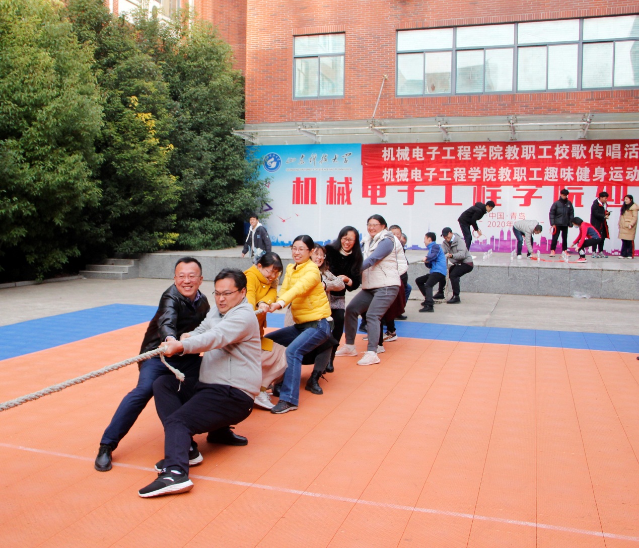 24日下午,拔河、跳大绳、套圈、垒球等项目更是高潮迭起,老师们各展技艺,团结一致,激烈拼争,气氛非常热烈。老师们精彩表现,赢得了在场师生的喝彩。