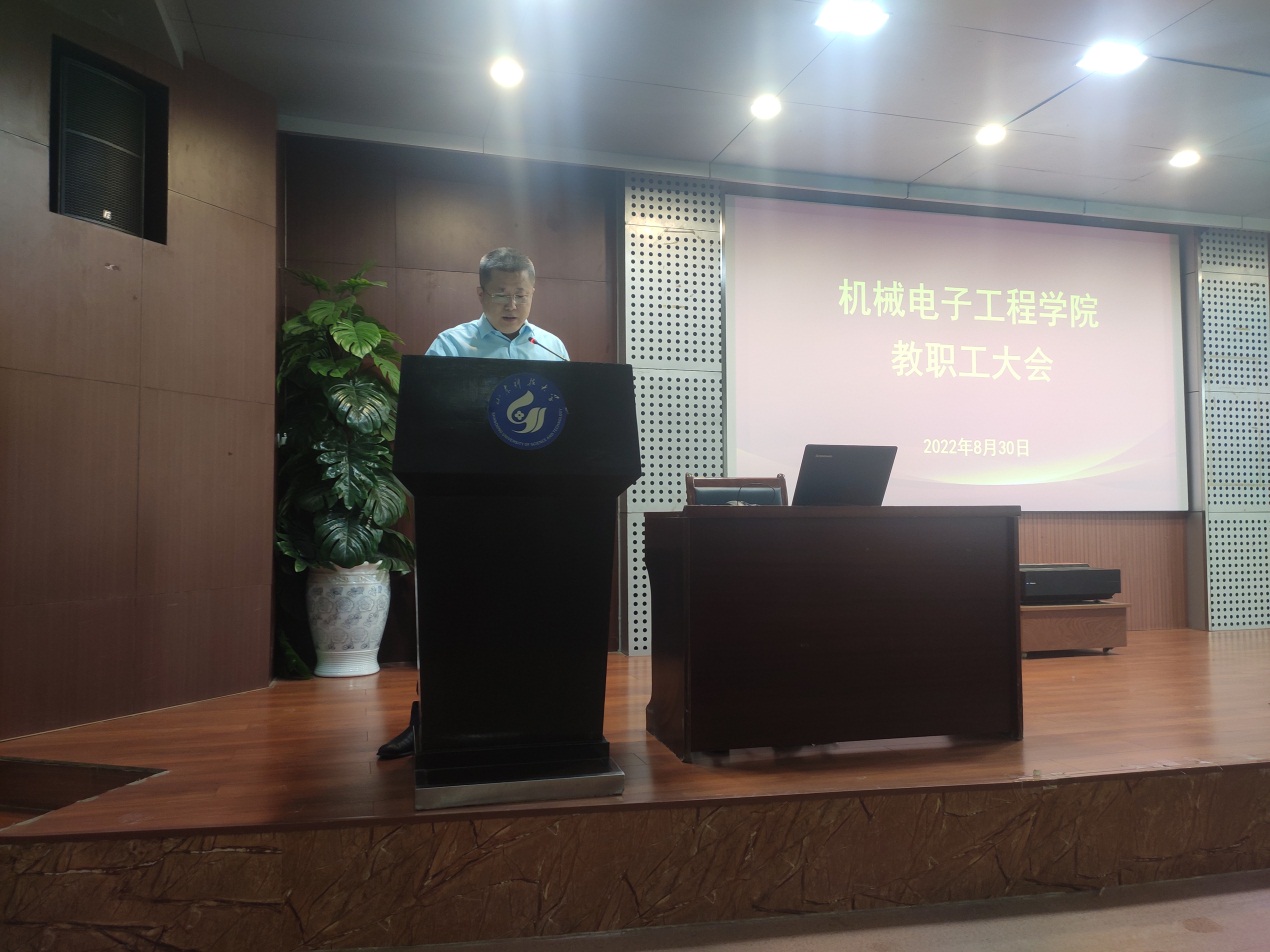 李双立书记首先对学院专职组织员和新入职教职工进行了介绍,随后传达了学校干部工作会议有关精神,并结合实际,指出了学院发展中存在的问题和不足,要求老师们要有创新理念、超前思维、开放共享理念、安全理念,共同促进学院更快更好地发展。