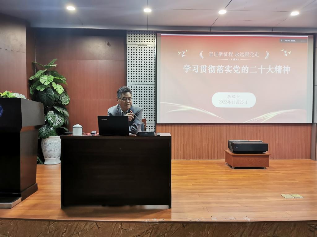 李双立从党的二十大的会议概况、党的二十大报告的框架结构与主要内容带领同学们深入学习党的二十大精神,并着重强调了科教兴国战略的重要性。随后,他又结合自身经历与理解,指出当今中国人不是生活在一个安全的时代,而是生活在一个安全的国度。最后,勉励同学们保持初心,提高自身对党的历史和基本知识的了解与掌握,为实现中华民族伟大复兴而不懈奋斗。