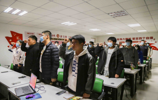 活动由集体观看纪录片《重逢》、心得交流会、重温入团誓词、齐唱团歌、撰写心得感悟等五部分组成。在心得交流会上,机电21-1班张昊发言道:“哪有什么岁月静好,只不过是有人在替我们负重前行,为了捍卫国家主权和领土完整,年轻的解放军官兵把身躯融入界碑,即使付出生命代价也寸步未让。”带着时代的使命,潘宇豪带领同学们重温入团誓词、齐唱团歌,同学们高举右拳,面对团旗庄严宣誓,奏唱团歌,激昂有力的声音在室内回荡,重温入团誓词让同学们热血沸腾,活动在激昂的氛围中落下帷幕。会后,潘宇豪要求同学们撰写心得感悟来进一步提高团员的思想道德素养。