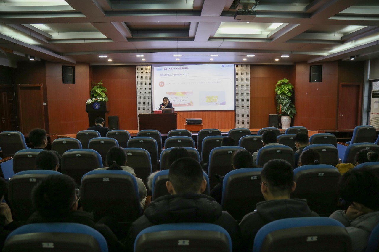 点击:为深入学习贯彻党的十九届五中全会精神,12月11日下午,教务处副处长樊建聪在草榴 报告厅为草榴 2019级联系班级学生宣讲党的十九届五中全会精神,辅导员宋阔出席本次会议。