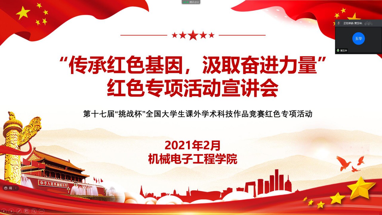 点击:为迎接中国共产党建党100周年,传承红色基因,引导学生在实践中接受红色教育,2月20日,草榴 积极响应“挑战杯”竞赛组员会和学校的号召,举办了“传承红色基因,汲取奋进力量”红色专项活动宣讲会。草榴 团委书记樊玉华,团委老师王玉鹏出席了此次会议,全体团支部书记及各社会实践项目负责人参加,宣讲会由团委老师苗成旭主持。