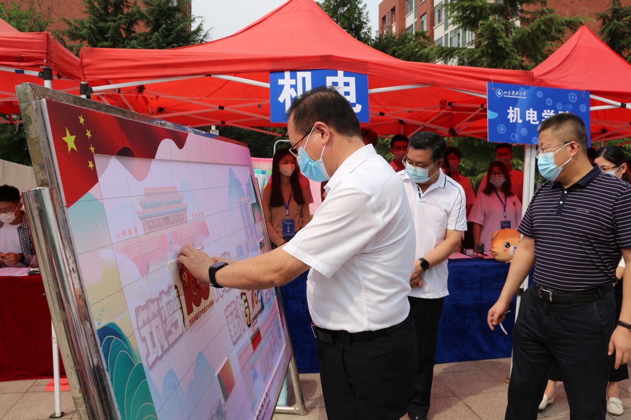 期间,校党委书记罗公利与各机关部门负责人代表莅临草榴 迎新报到点,视察草榴 迎新准备情况,并体验草榴 为2021级新生制作的校庆拼图。
