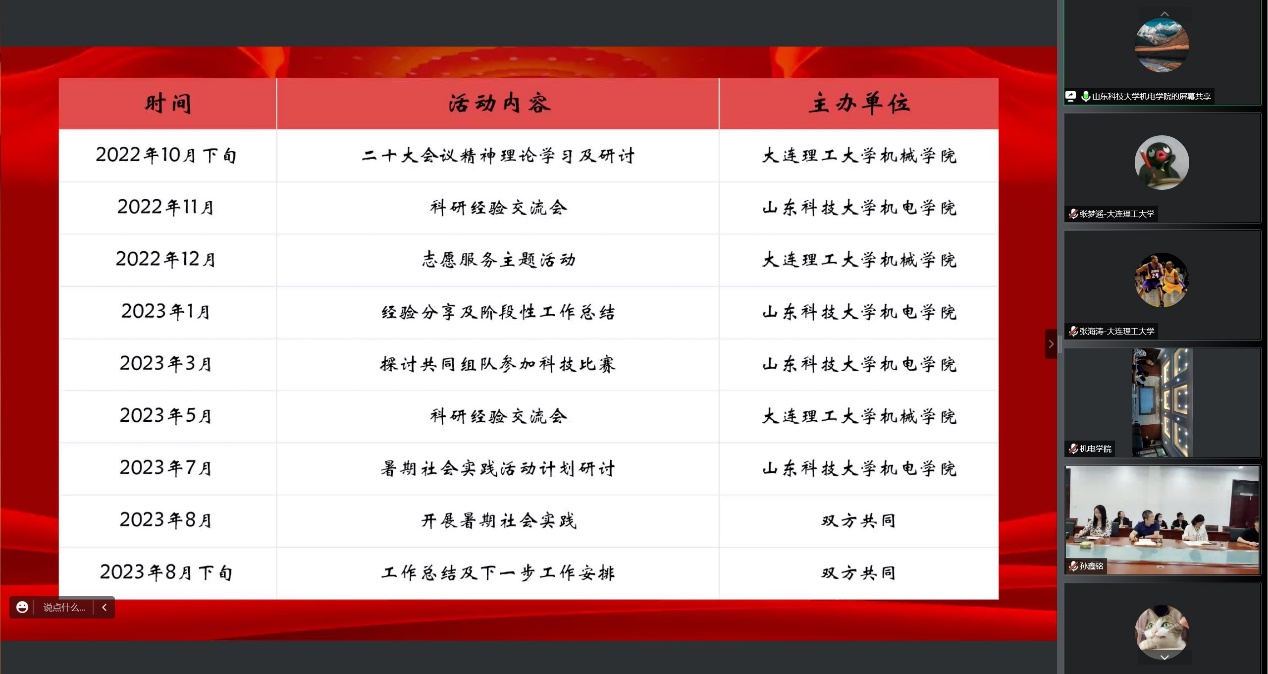 点击:为充分发挥党建引领作用,构建“资源共享、优势互补、互相促进、共同提高”的工作新格局,进一步提升基层组织战斗力。9月22日,草榴 小平科技创新团队党支部、草榴 部分团支部与大连理工大学机械草榴 高性能制造硕博第六学生党支部、团支部在线上开展支部联建活动。本次活动由草榴 学工办主任(团委书记)樊玉华主持。