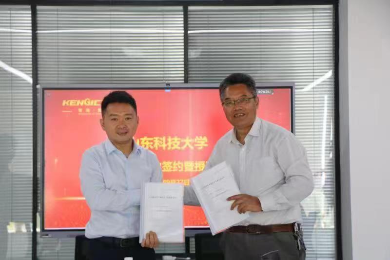 草榴 走访团首先来到科捷智能科技股份有限公司,与公司董事长龙进军和研发中心负责人孙袁博士等进行了合作交流座谈。走访团队率先参观了企业展厅和车间,双方就共同申报项目、企业委托开发、实验室共建、学生就业等方面进行了深入交流,李书记和龙董事长分别代表校企双方签订了教学实习基地协议,并举行了授牌仪式。