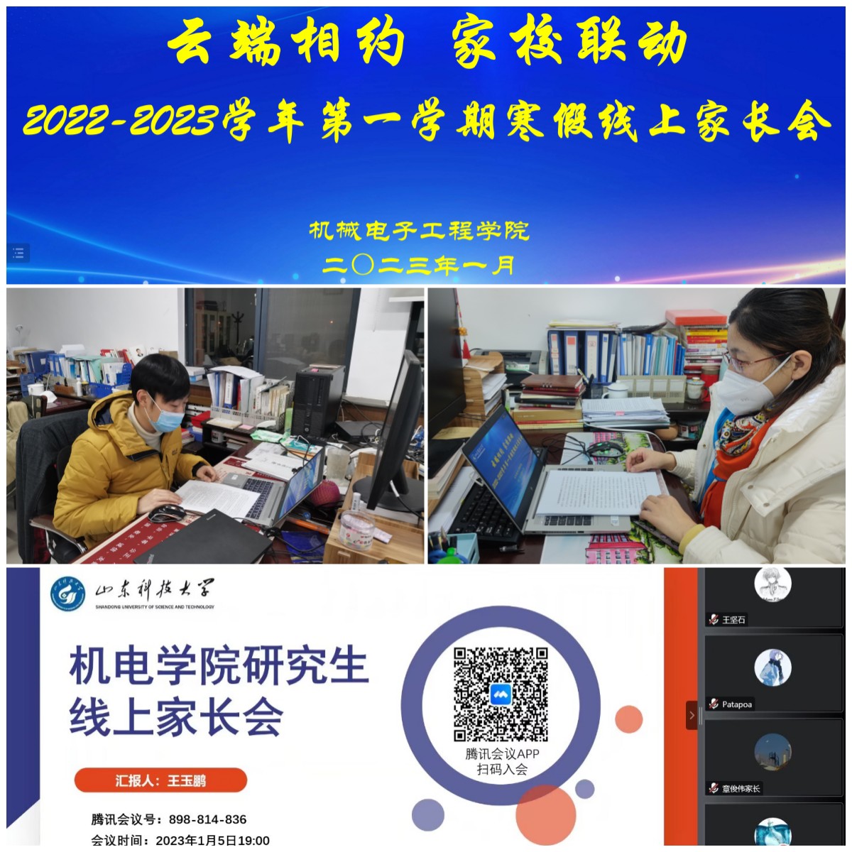 草榴 高度重视家校协同工作的开展,全体辅导员分别召开线上家长会,与学生家长在云端相聚,架起家校连心桥,共同构建“教育命运共同体”。家长会中辅导员带领家长回顾草榴 本年度工作和学生们本学期的在校生活,并针对年级特点跟家长沟通了学业成绩、社会实践、科技创新、应征入伍以及就业等相关工作,与家长共同分析学生现阶段成长发展中的问题,以问题切入,“把脉问诊”,与家长共同商讨“治疗方子”,提出针对性的建议和指导,满腔热忱地为学生办实事、解难事。