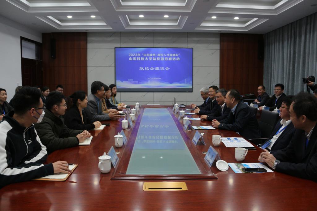 滕州市副市长张传纲高度赞赏学校近年来的发展成绩,就滕州市经济社会、产业发展等基本情况做了详细介绍。他表示,希望通过此次到访交流,寻求校地、校企更多的交流合作,进一步推动政校企实现高质量发展。