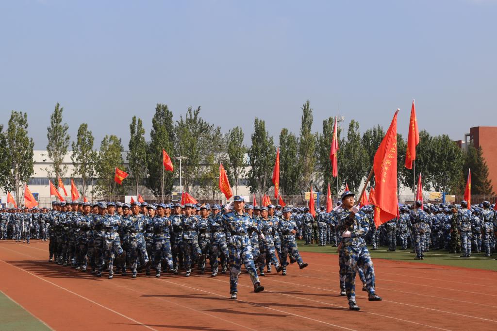 闭幕式上,整个校园弥漫着一股欢腾的氛围。彩旗翩翩起舞、迎风飞扬,每一面旗帜都见证了新生们的汗水和努力。伴随着《分列式进行曲》的响起,闭幕式进入高潮。