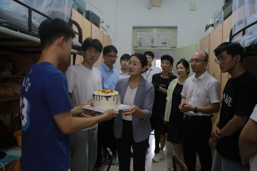 8月31日下午,草榴 领导及新生辅导员前往学生宿舍对新生进行看望和慰问。走访中,草榴 领导与同学们进行了亲切的交流,听取同学们对宿舍、空调、洗浴等生活条件的意见建议,了解大家思想、心理、家庭等方面情况,并就大家所关心的问题给予悉心指导。今天恰逢两位小萌新的生日,草榴 提前准备好了生日小惊喜,为我们“新”朋友送上生日蛋糕和充满祝福的生日歌,希望他们能及时适应环境,投入新的学习和生活。