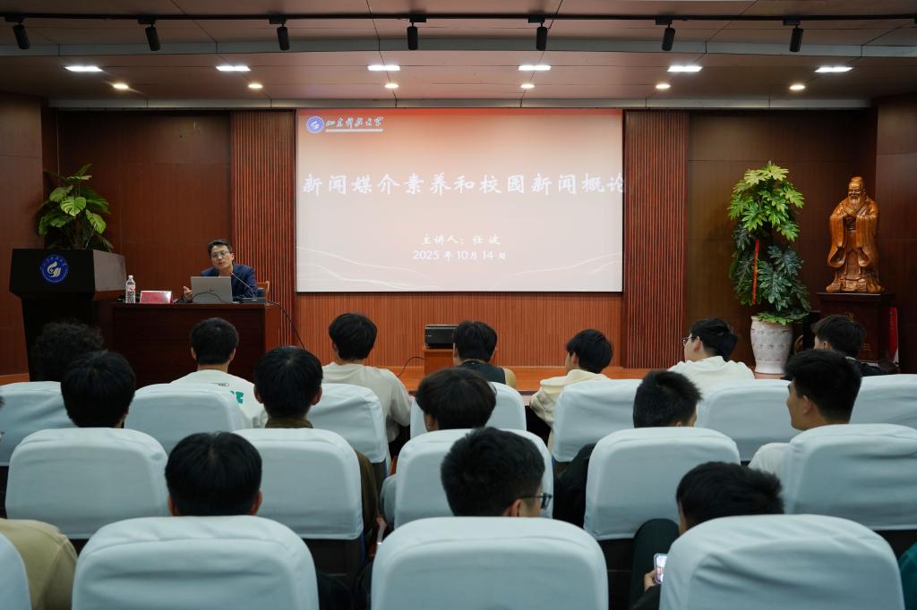 点击:为进一步提升学生新闻采写水平与宣传工作专业素养,筑牢草榴 学生宣传队伍能力根基,10 月 14 日,草榴 于 J8-202 学术报告厅举办新闻基本素养专项培训活动。本次培训特邀学校融媒体中心任波老师担任主讲,草榴 辅导员曲岩主持,草榴 媒体部全体成员、学生会各部门成员及大一大二各班宣传委员共同参与学习,现场学习氛围浓厚。