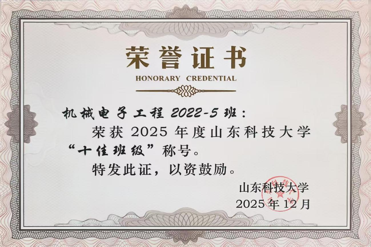 机械电子工程2022-5班获评草榴 “十佳班级”