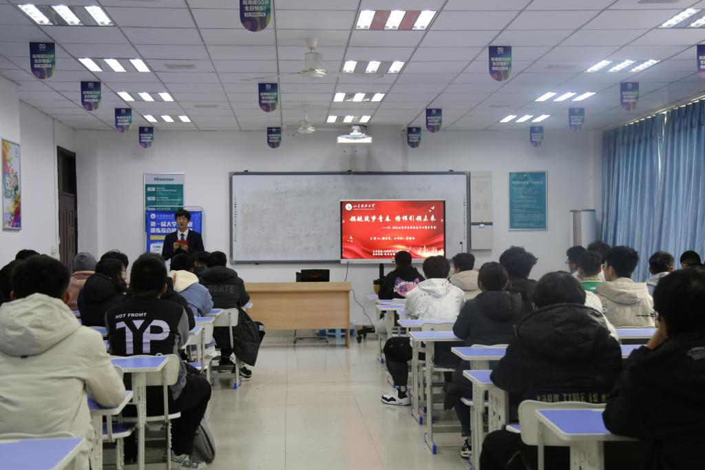 党的二十大报告中鲜明提出,要实施科教兴国战略,强化现代化建设人才支撑。甘兆露围绕综合类、创新创意作品类、竞技技术类等比赛类型,向同学们讲述了如何在科创竞赛中拔得头筹,并表示只有真正参与到科创中,才能真正明白在中国科创领域“开疆扩土”的前辈们是多么的不易与艰辛。“探索无止境,发展也无止境,创新更无止境。”尚雪依据自己的竞赛经历,结合自身参与的科研项目,鼓励2022级同学们勇于创新、奋力前行。