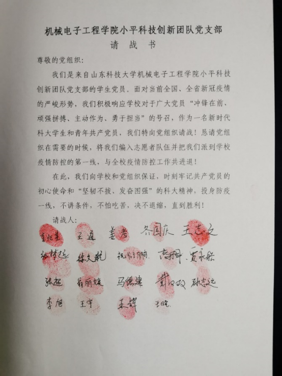抗击疫情,勠力同心。疫情突然袭来,学校、草榴 疫情防控严峻,小平科技创新团队党支部全体在校党员第一时间集体请战,郑重签下请战书,用自己的实际行动践行了共产党员的使命与担当,成为校园疫情防控中最美的一抹红色。